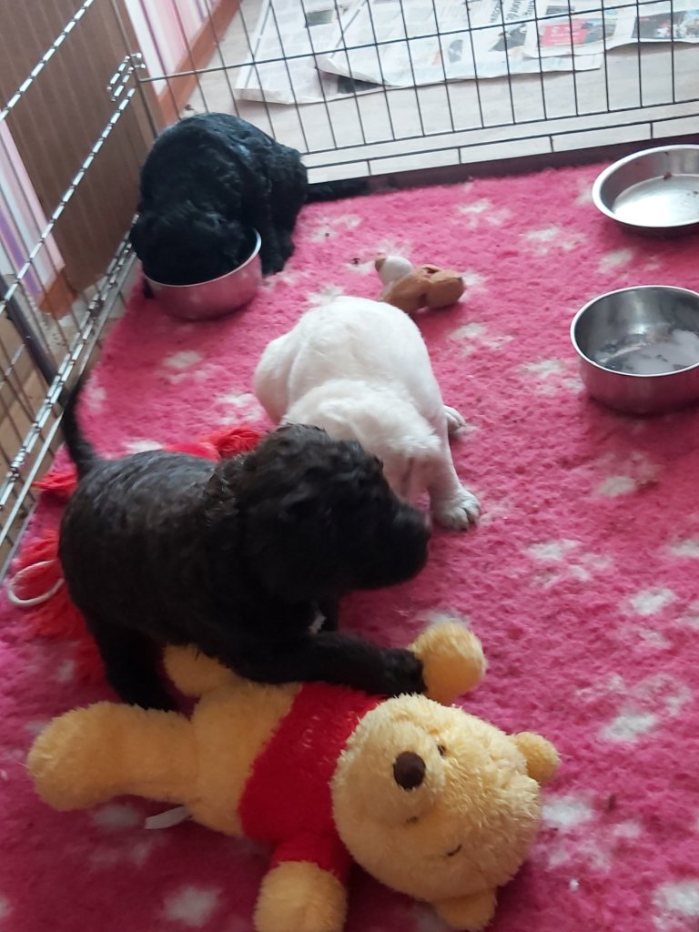 Moeder Pipa heeft het geweldig gedaan! Op 12 februari brengt de zwarte krullebol een nestje ter wereld met vijf reutjes en twee teefjes. De pups wegen ongeveer 350 gram. Prachtige gezonde labradoodle pupjes!