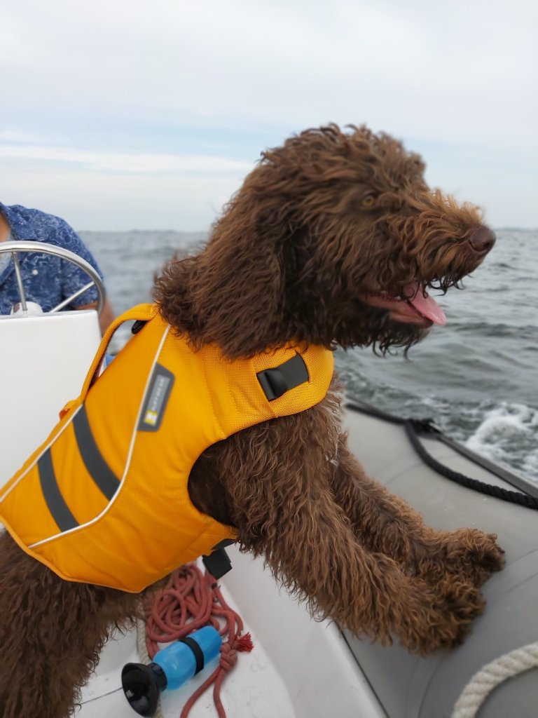Dat weekend start de zomervakantie met prachtig weer voor een tochtje over het water. Monty trekt zijn nieuwe zwemvestje aan. Samen stuiteren we op hoge snelheid over het Haringvliet. Monty geniet! Een heerlijke start van de vakantie.